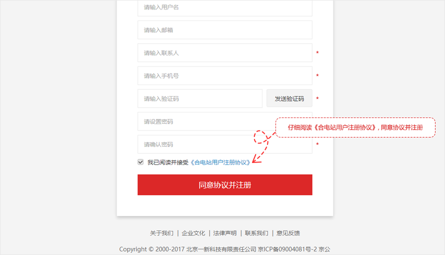 4.仔细阅读《合电站用户注册协议》,同意协议并注册